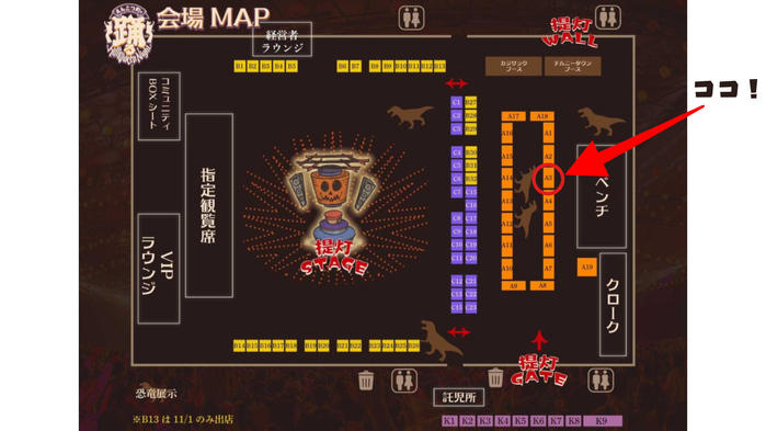 LIVE会場となる〝提灯STAGE〟からは見えない位置にはなりますが、CHIMNEY TOWNやカジサックブースの近くになるので、お客さまの目には入りやすい位置かと思います♪