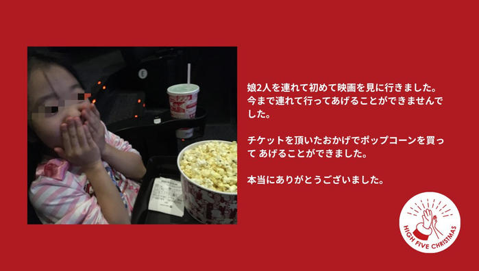 - 2020年のムビチケ支援では、初めて映画館を体験する子どもたちがたくさん生まれました。
