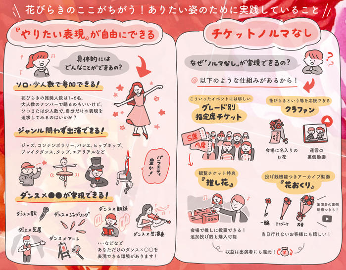 • 花びらきは、これからも「挑戦したい」と願うダンサーの背中を押し続けられる場でありたいと考えています。