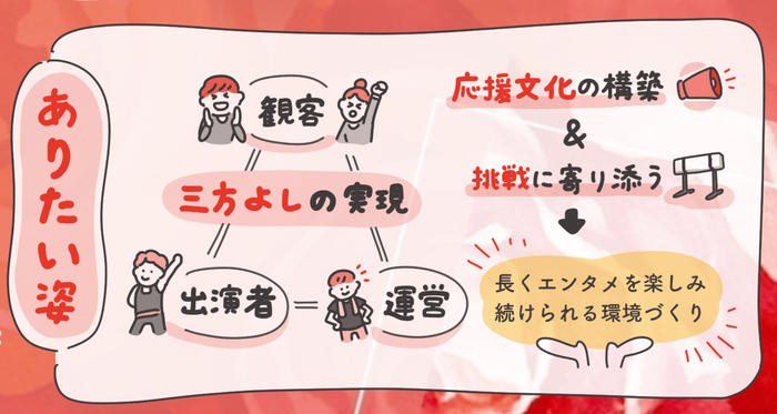 実際に、「ノルマの支払いが難しいため出演を諦めた」という声は、これまでに多く耳にしてきました。挑戦の芽を摘んでしまっているのです。