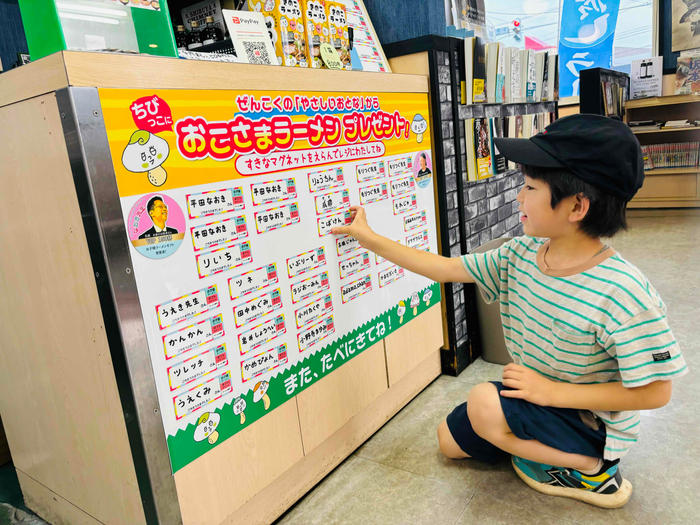 - ※お子様ラーメン支援者さんのマグネットを選んでる様子